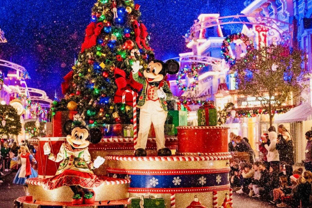 Mickey’s Once Upon a Christmastime Parade happens twice each night at 8:30 p.m. and 11:30 p.m. This is the parade where the magical snow falls on Main Street, so be sure to catch it and enjoy all the Christmas charm it brings!